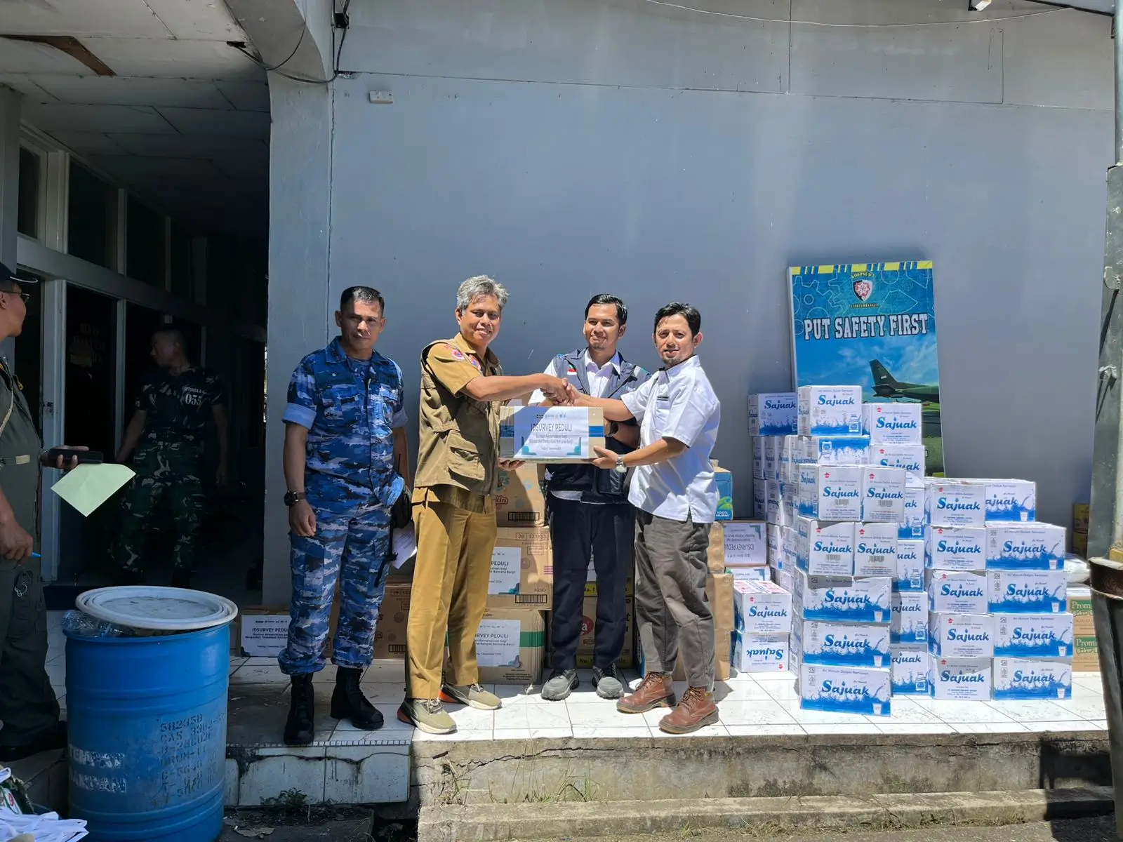 Jalur laut juga dimanfaatkan untuk mengirim bantuan ke Nagari Sungai Batang, Kecamatan Tanjung Raya, Kabupaten Agam, yang masih terisolasi akibat jalan tertutup.